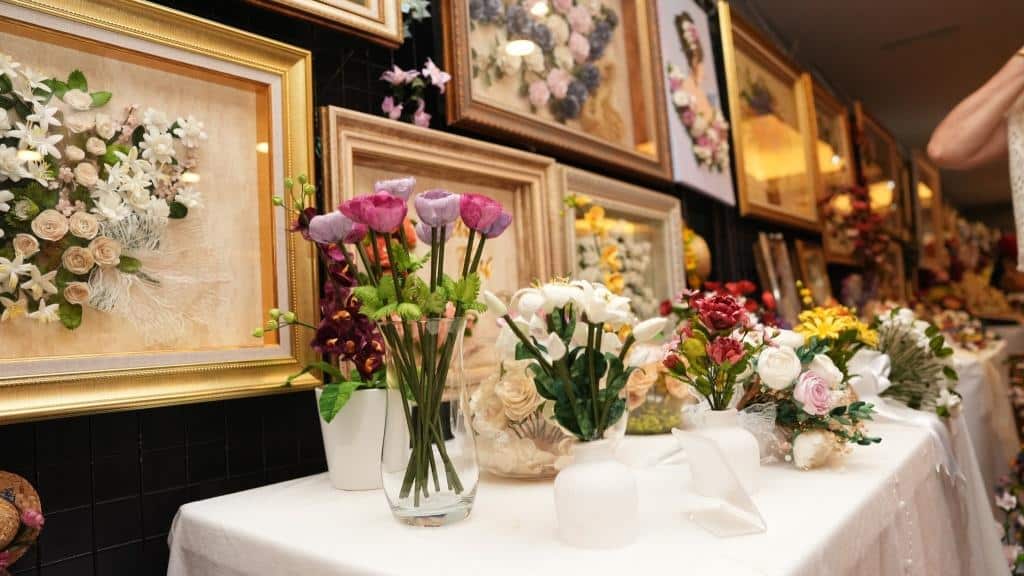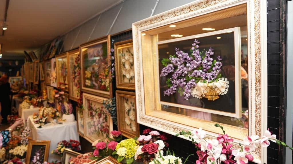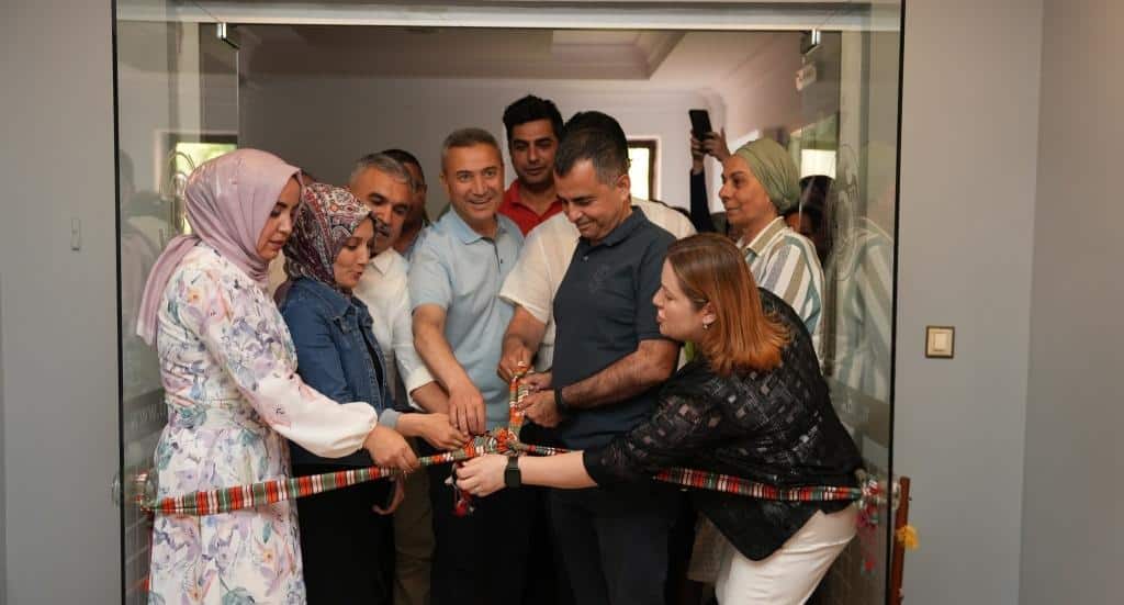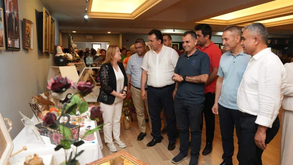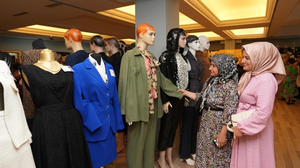 Konuşmaların ardından katılımcılar kurdele keserek serginin açılışını gerçekleştirdiler. Açılıştan sonra katılımcılar kursiyerler tarafından yapılan giyim, resim, ipek kozasından materyaller, nakış, dikiş, takı, tasarım, hat sanatı, kuaförlük, ahşap boyama, seramik sergi alanlarını gezip çalışmaları incelediler.