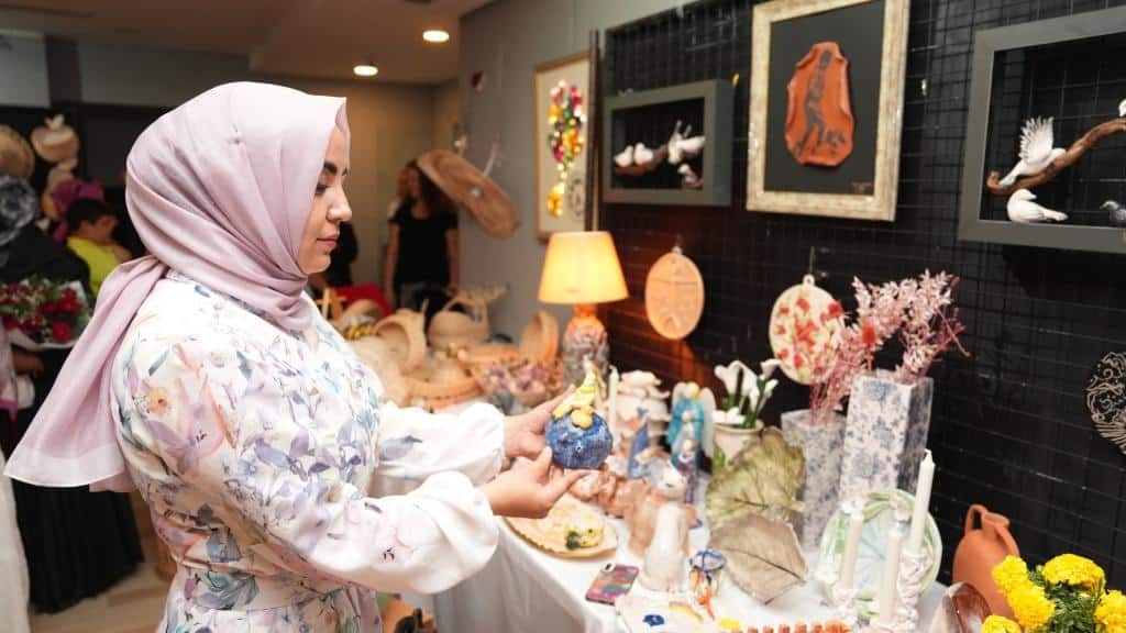 Daha sonra Kültür Merkezi fuaye alanında bulunan resim, mozaik, filografi'den oluşan yaklaşık 100 adet ürünün sergisi gezildi, darbuka gösterisi izlendi.